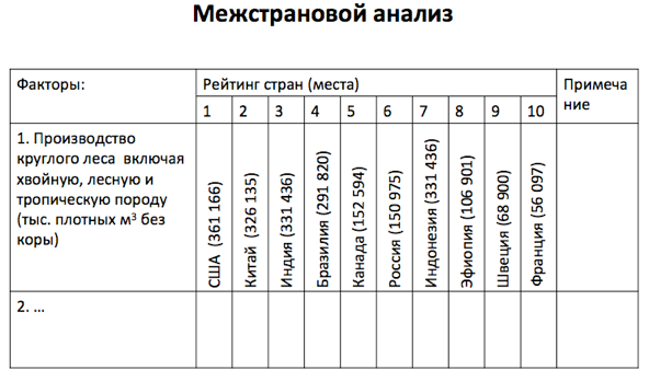 Для проведения межстрановго анализа важнейшие факторы, отобранные в PESTLE-анализе, размещаются в таблице в следующем виде: